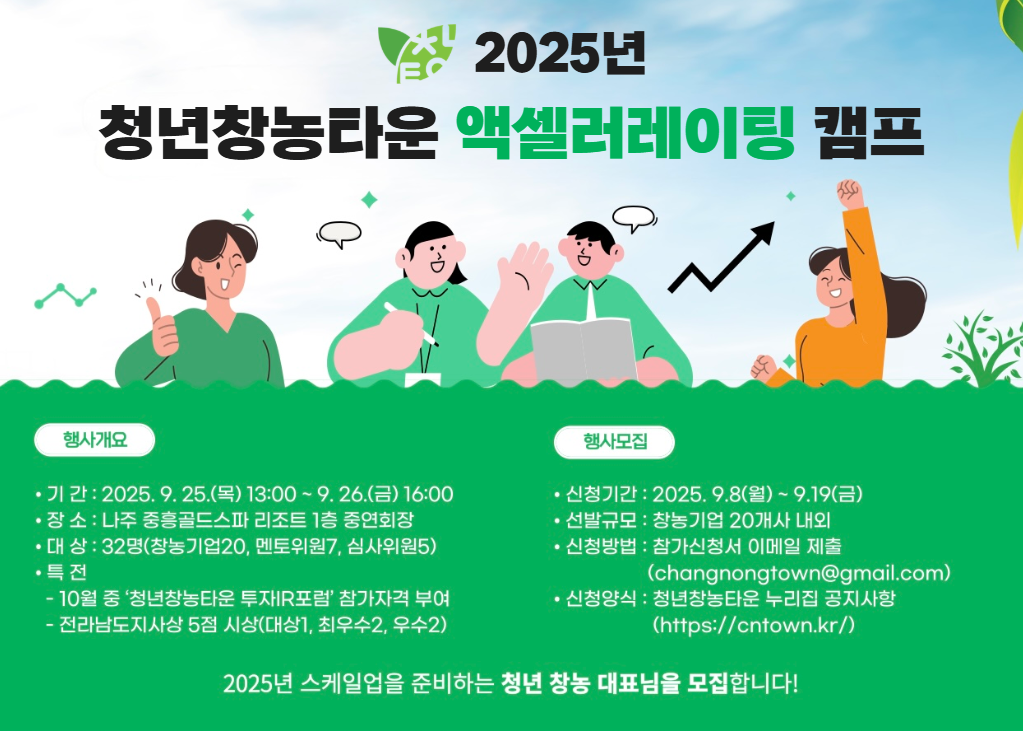 2025년 청년창농타운 액셀러레이팅 캠프 참가자 모집